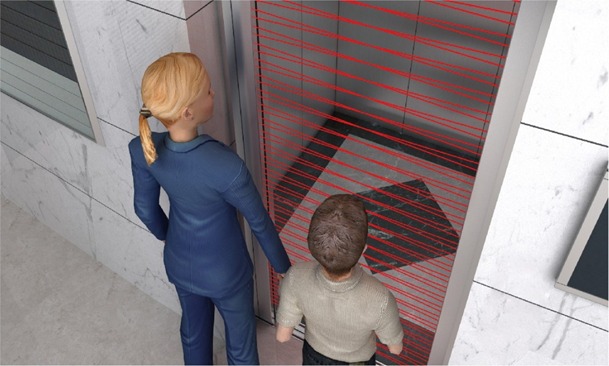 A AURIS elevator has set intensive, sensitive infrared light curtains at the landing door for all-round protection, which can react to people or goods in the detecting area, making the access more safe and free.